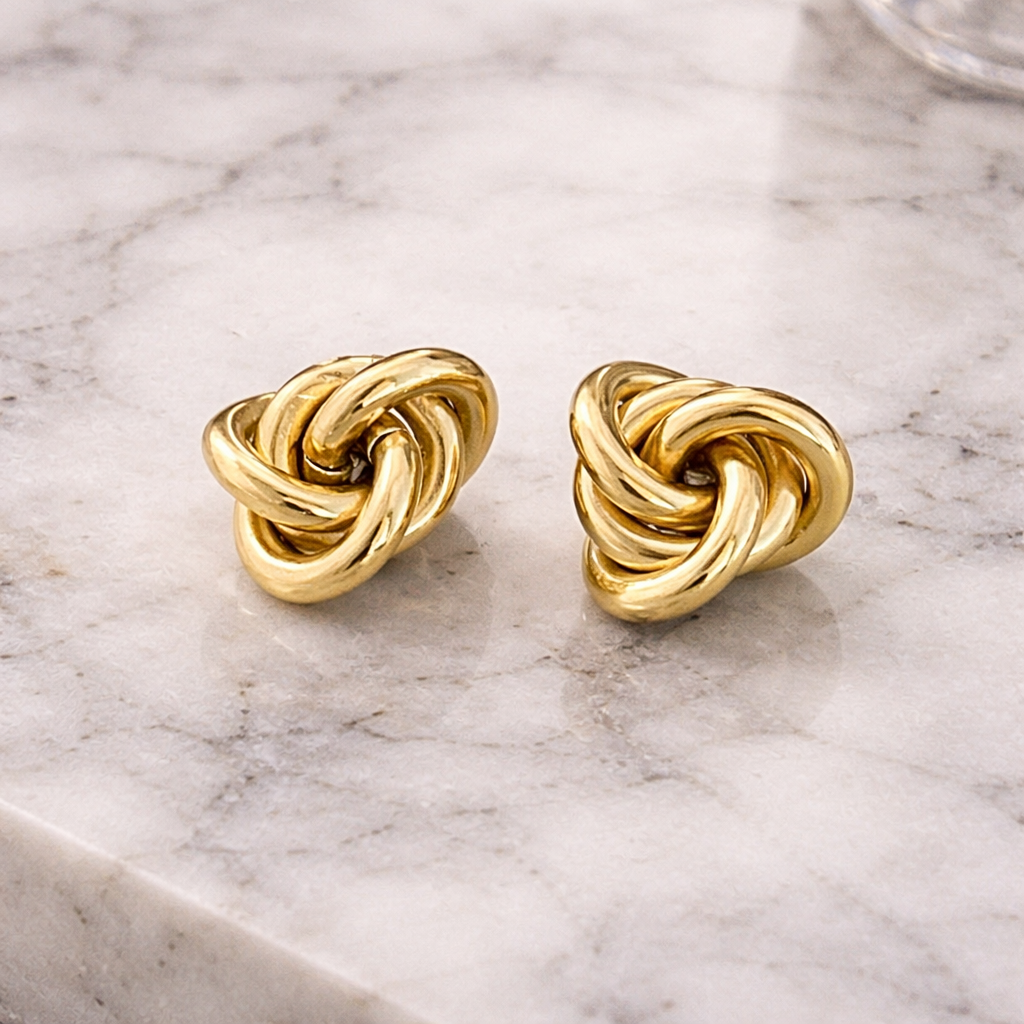 The Hailey Knotted Stud Earrings are crafted from 18k gold-plated titanium steel and designed for effortless, everyday wear. Featuring a sculptural knot design, these studs offer a polished finish that adds subtle statement to any look.