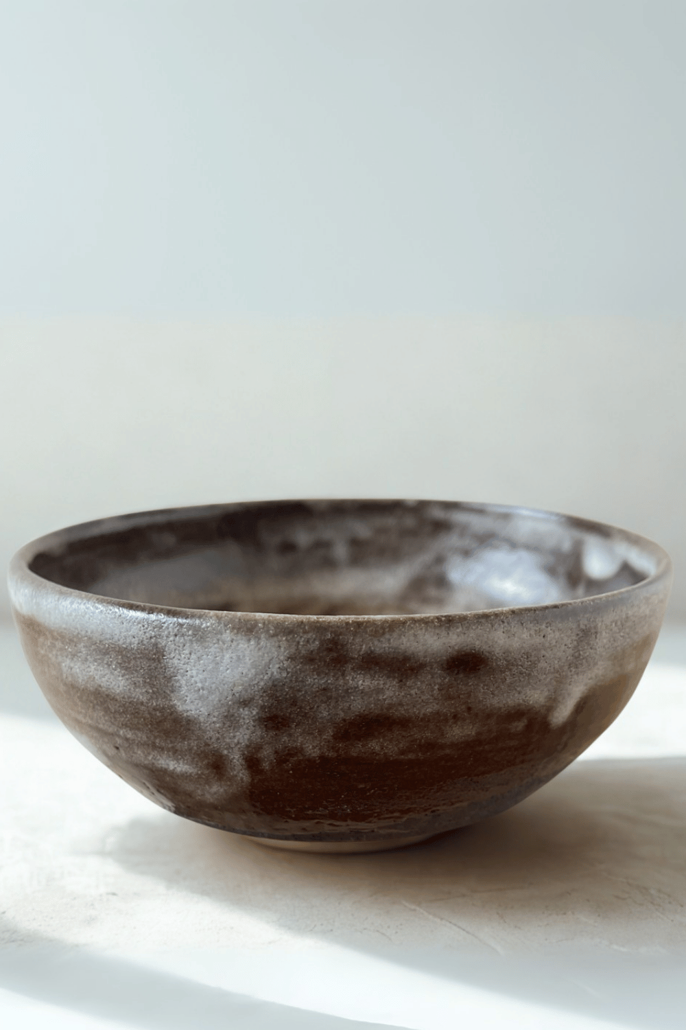 Ceramic bowl. It features a dark, matte exterior with visible texture to ressemble granit with refined insides creating a soft gloss of ceramic
